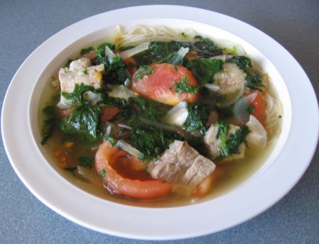 Bauchfleischsuppe mit Spinat und Tomaten |
