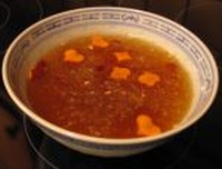Salsa (para 4 personas o 20 rollitos) 1 chile seco (sin granos) 1 diente de ajo 2 cucharaditas de azúcar 4 cucharadas de zumo de limón 4 cucharadas de vinagre 6 cucharadas de agua 6 cucharadas de salsa de anchoa (Nuoc Mâm) unas rodajas o ralladuras de zanahoria |