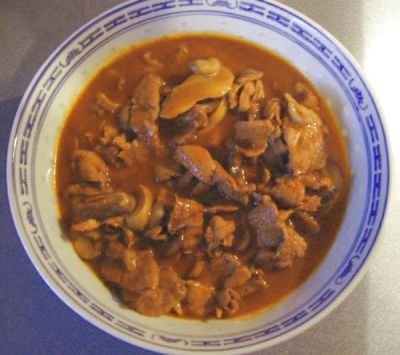 anbraten. Wenn Dosen-Champignons verwendet werden, nur das Fleisch anbraten und die Pilze dann unterrühren.