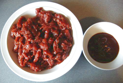 Das Fleisch etwa 1 Std. ziehen lassen. Wer es pikanter mag, nimmt die höhere Angaben bei der Marinade.