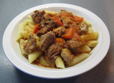 Jetzt die Pfifferlinge (ohne die Flüssigkeit) dazugeben, Topf schließen und eine weitere 1/2 Std. schmoren lassen.