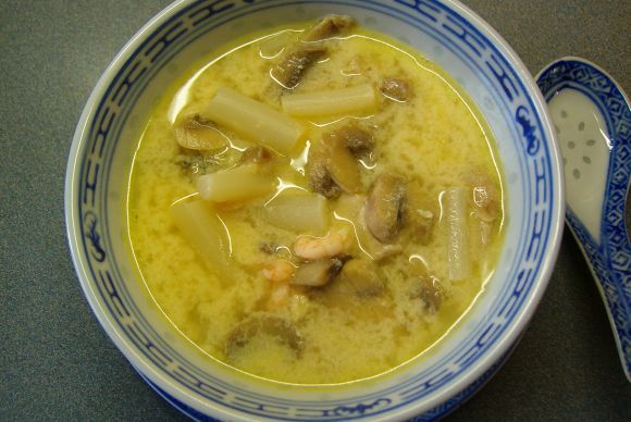 Die Suppe schmeckt auch sehr gut, wenn sie nur mit Hühnerinstantbrühe zubereitet wird. In diesem Fall mit frischem feingehackten Ingwer oder Ingwerpulver nachwürzen. Wer es mag, kann auch das ganze Ei (also auch das Eiklar) verrühren und in die Suppe geben. Petersilie und roter Essig sind Bestandteil des klassischen Rezeptes und sind deshalb der Vollständigkeit halber mit aufgeführt. Wir mögen die Suppe am liebsten ohne. |